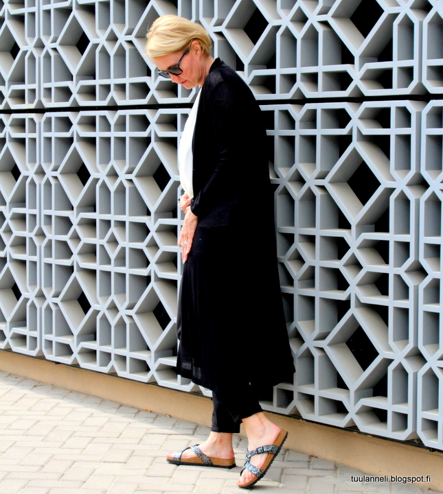 Kiitti 🙂 mustavalkoinen kyllä toimii aina 🙂 näitä pitäisi kyllä löytyä kaupoista varsinkin tämäkin on ohut materiaali // toivottavasti löydät koska tämä on niin helppo vaate ja matkavaatteena ihan ehdoton. Neuletakin kanssa on kiva rakentaa erilaisia kokonaisuuksia.