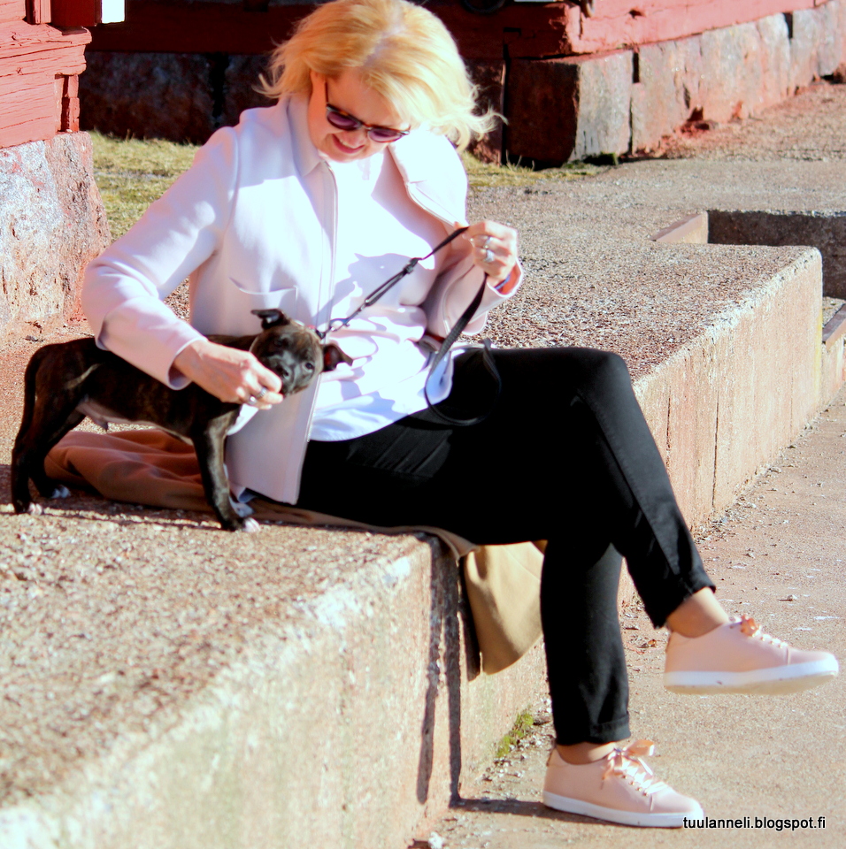 Ihana Hans �� uskon, että hän tekee tuttavuutta ihmisten kanssa koska staffit ovat niin ihmisrakkaita. Muikeita kuvia tästä teidän koiravauvasta. Sinulla on jo niin keväisen hempeää päällä. Hauskat nuo kengät myös ja kiva väri – kenen?