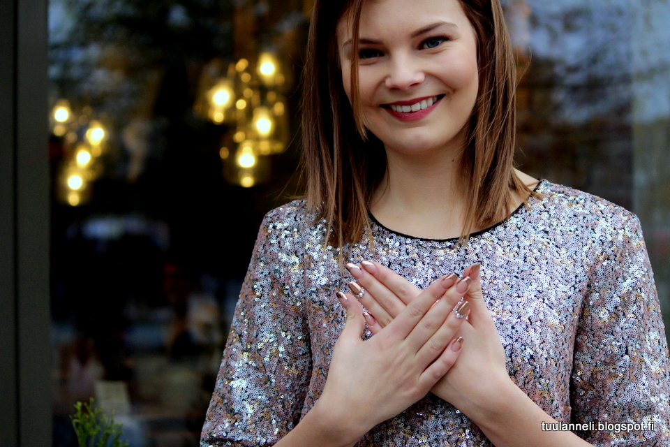 Muotibrunssille Katarina oli valinnut teemaksi ruusut ja vaaleanpunaisen värin. Vietettiinhän perjantaina Roosanauha -päivää. Kukkakuosi on aina naisellisen kaunis. Emman yllä ollut roosanvärinen paljettimekko oli kaunis ja vielä kun hänellä oli sävy sävyyn tehnyt kauniit kynnet. Toimiva juhlakokonaisuus.