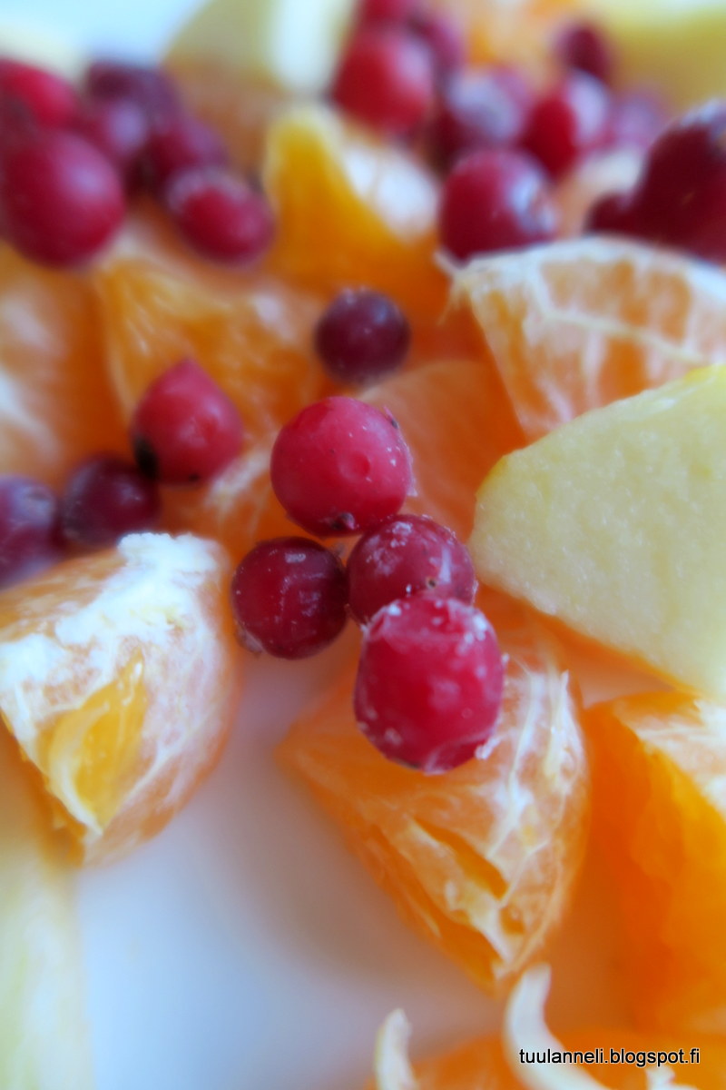jäiset karpalot tuovat tuovat kivan pirteyden hedelmäsalaattiin!
